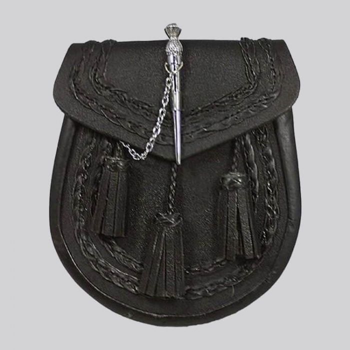 Black Leather Braided Sporran - Thistle Pin Lock