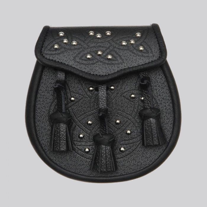 Black Leather Celtic Embossed Studded Leather Sporran