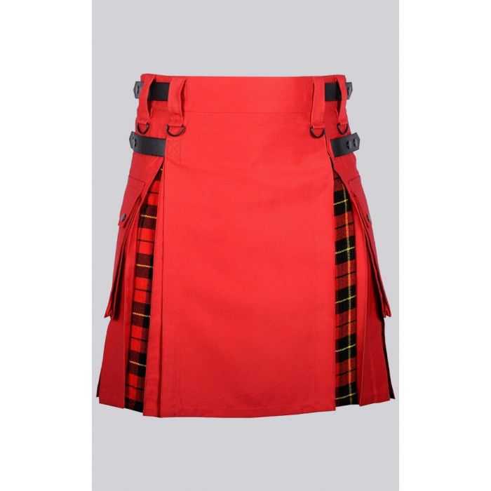 Red Cotton Wallace Tartan Scottish Utility Cargo Hybrid Kilt