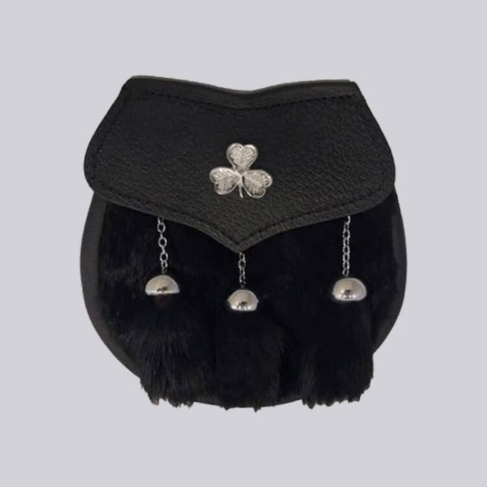 Semi Dress Sporran - Black Rabbit Fur - Shamrock Emblem